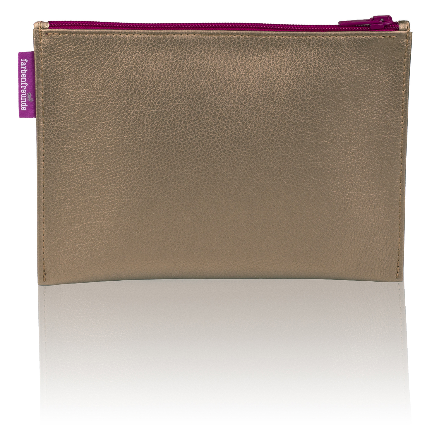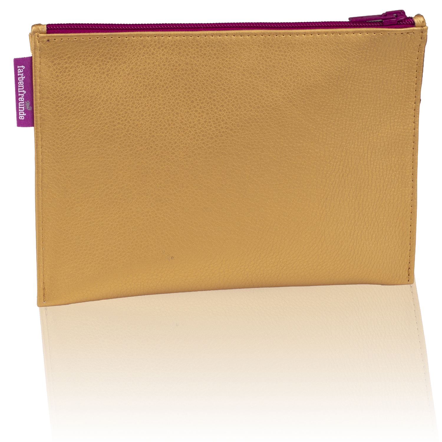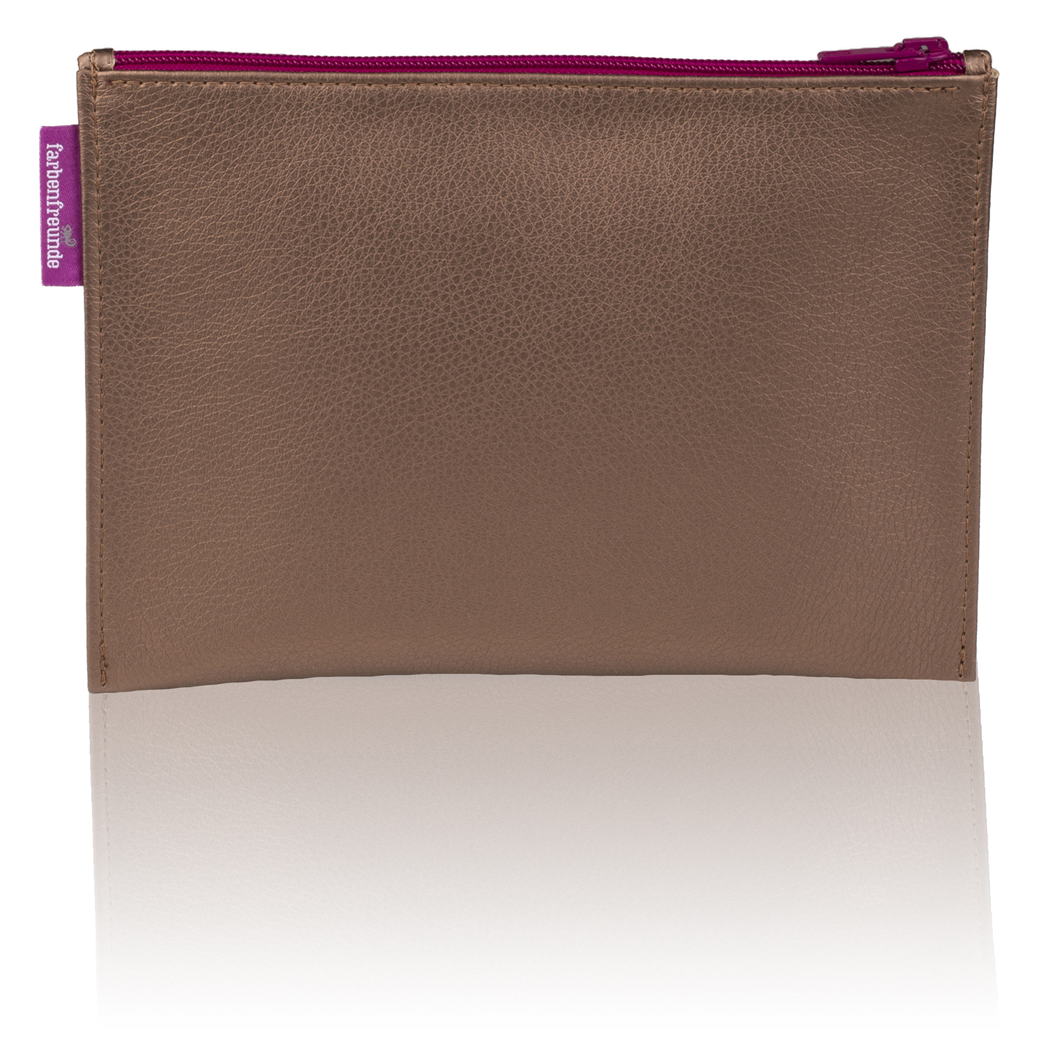 Dieses flache Täschchen sorgt für Ordung in Ihrer großen Handtasche. In ihr verstauen Sie alle Dinge griffbereit, nach denen Sie sonst auf dem Grund Ihrer Tasche verzweifelt suchen. Nutzen Sie es als kleines Beauty-Täschen für Lippenstift,kleine Handcreme und Miniparfum. Nehmen Sie es mit ins Meeting und verstauen Sie darin Stifte, USB Stick und Büroschlüssel. Oder trasportieren Sie darin sicher Geld, Karten und Pass und Reiseunterlagen, wenn Sie unterwegs sind.